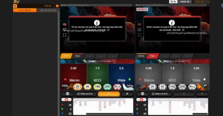 Hệ thống triển khai 3 cửa cược là Meron, Wala và BDD với tỷ lệ thắng cao lên đến 95%. Nhà cái cập nhật liên tục các tỷ lệ kèo, hệ số thưởng niêm yết cụ thể giúp hội viên theo dõi dễ dàng.